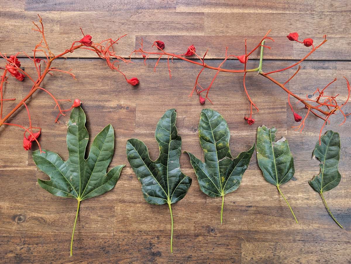 The Illawarra Flame Tree is known for its striking red flowers, but Leon says the leaves are particularly interesting. Flame Trees have a characteristic called heterophylly.