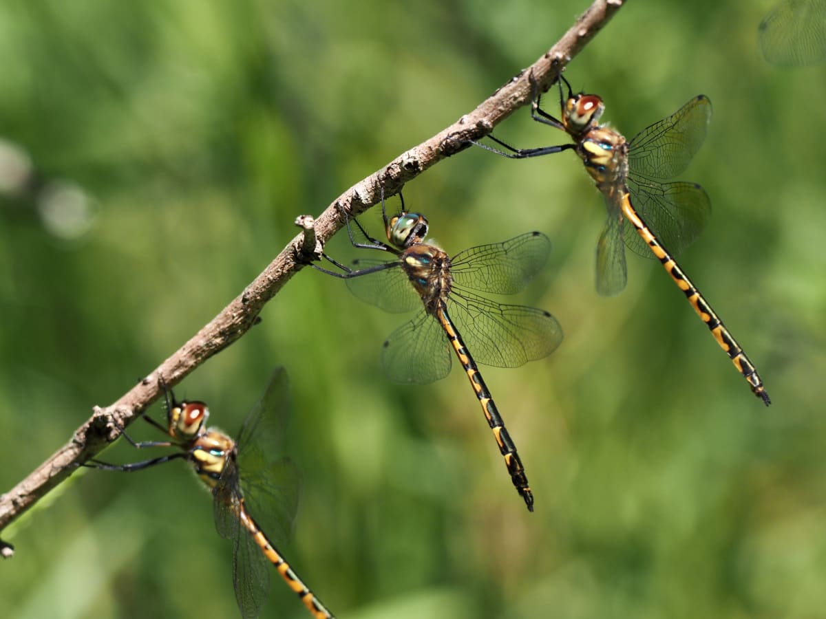 I turned a corner and the sky exploded with dragonflies and damselflies. They zigzagged around the sky snatching at insects, before landing on nearby leaves and twigs to feast on their newly caught meals.