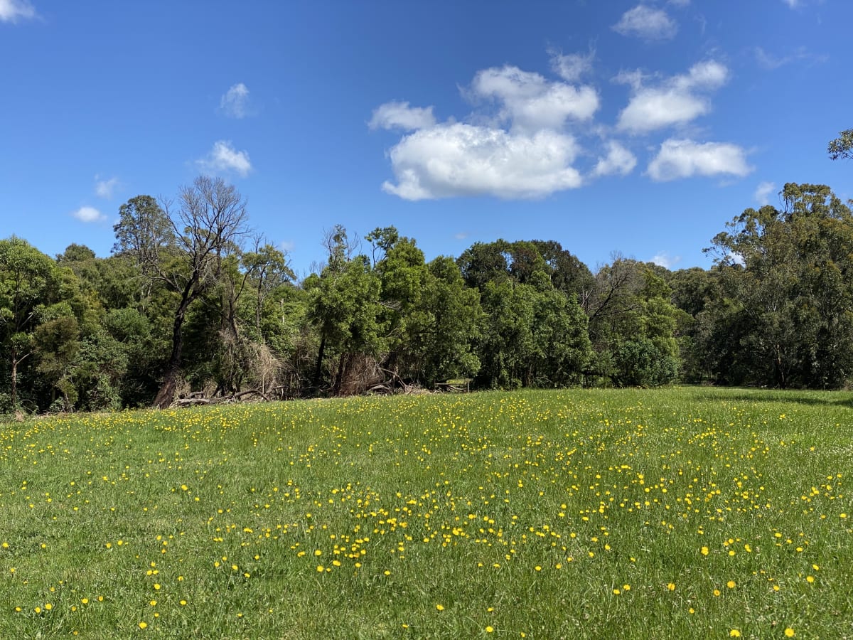 There’s a few entrances to the reserve and I found myself at the entrance at Shellharbour Road. I parked my car and looked around and thought to myself, “Now what?” There was a large undercover barbecue area but I wasn’t there to sit and ponder life. I wanted to find all the things! And so not finding a dedicated path during my quick spin around, I followed a jogger up a small incline, which opened up to a gum-lined field. And here’s where the magic happened. There was no real path, just a place where the grass had been flattened from various footfalls. I followed it into a native-violet-lined, dirt pathway where twittering superb fairy-wrens popped up every now and then and male golden-whistlers whistled to the nearby females.