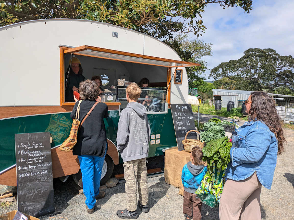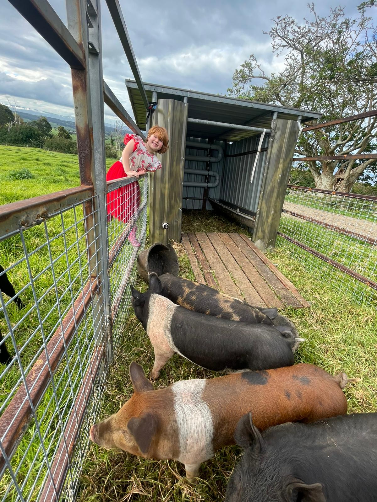 While brimming with ideas for future interactions with the public, the Greys are initially opening their farmgate every second Sunday morning for people to enjoy a coffee, a fresh gelato and a wander around paths to see the cows (sometimes in the distance), newly arrived pigs and chickens, a thriving permaculture garden and the amazing view.