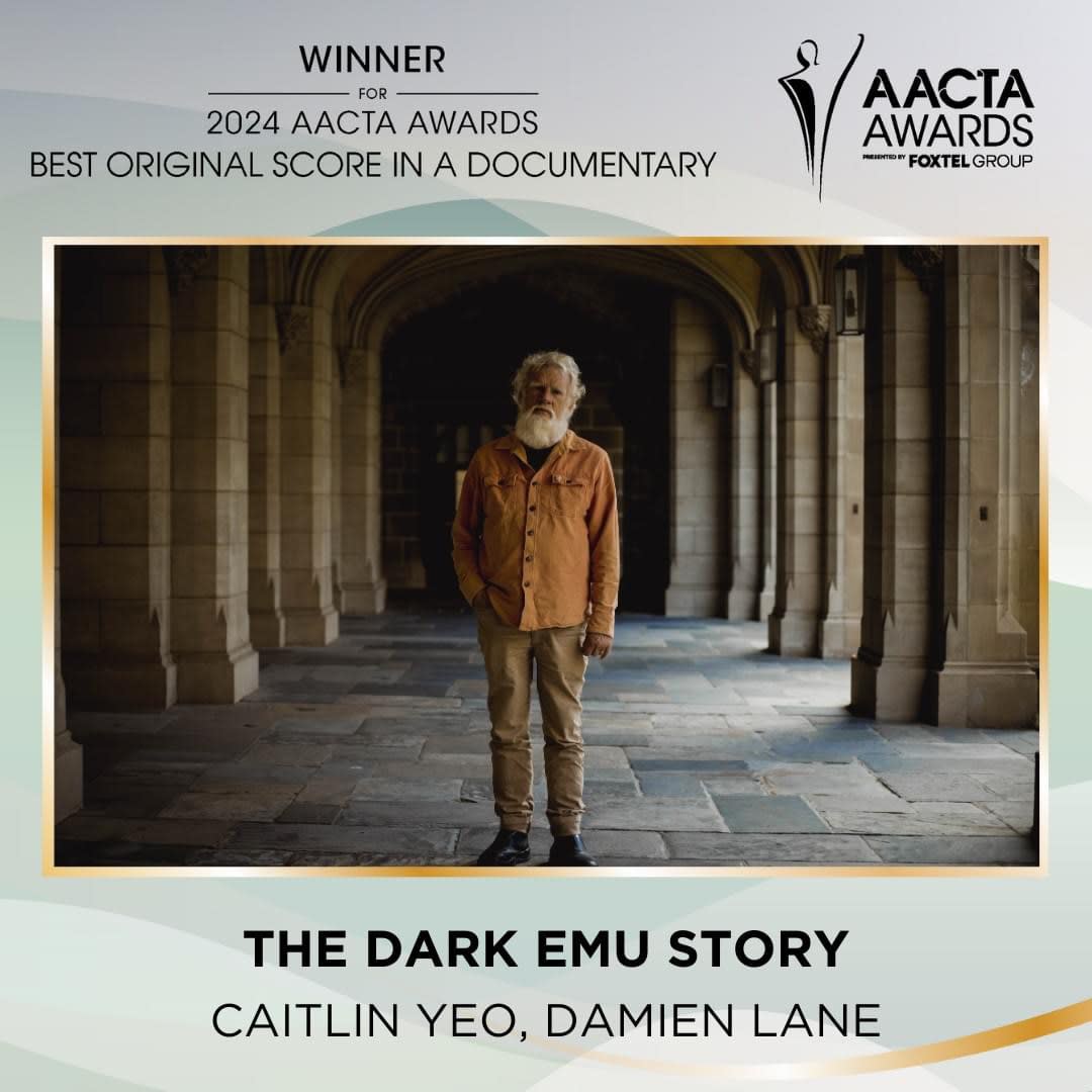 West Wollongong composer Damian Lane is sat behind us and he wins Best Original Score in a Documentary for The Dark Emu.