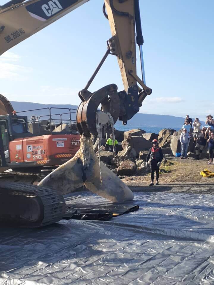 Most of the $44,043.43 total went to specialist salvage contractors AVCON, who used jet skis, marine equipment, excavators and bins to shift the carcass to council's Whytes Gully tip at Kembla Grange.