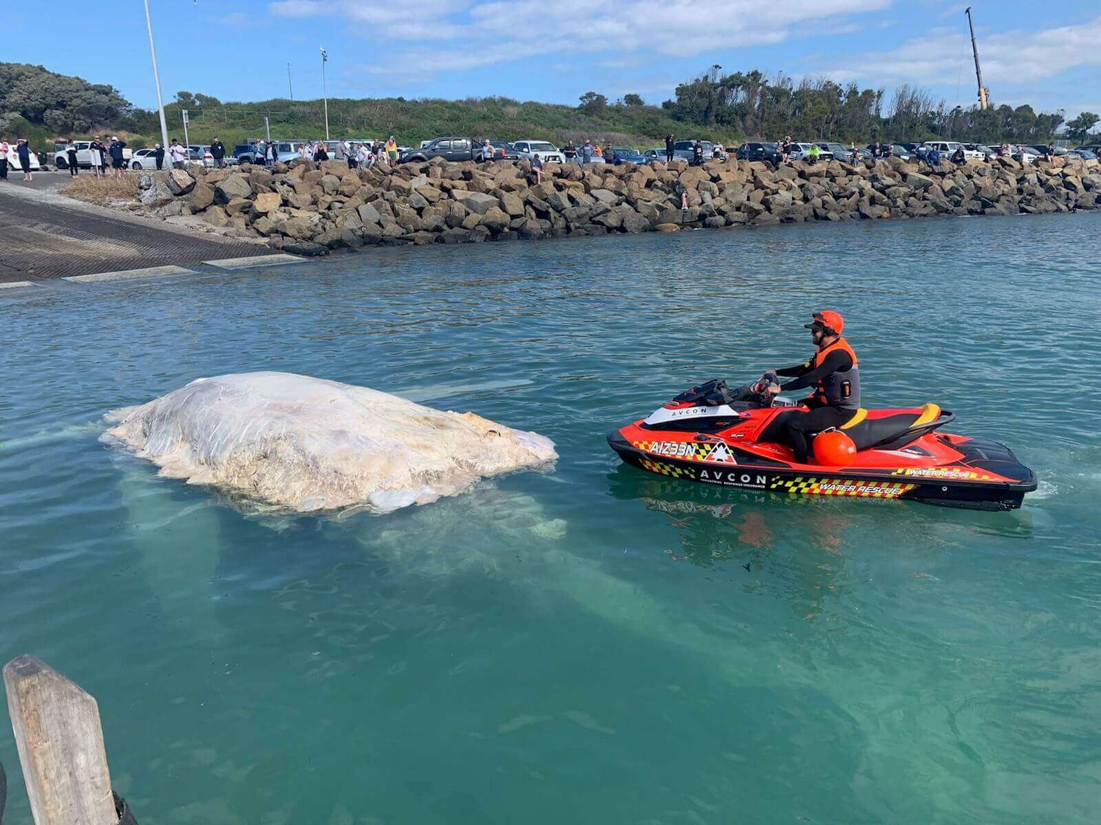 “This task not only required specialist staff and equipment but was complex and high risk in nature with the carcass shifting on a slippery rock shelf, wave movement, tidal conditions and the presence of multiple sharks in the nearby vicinity,” council reported.