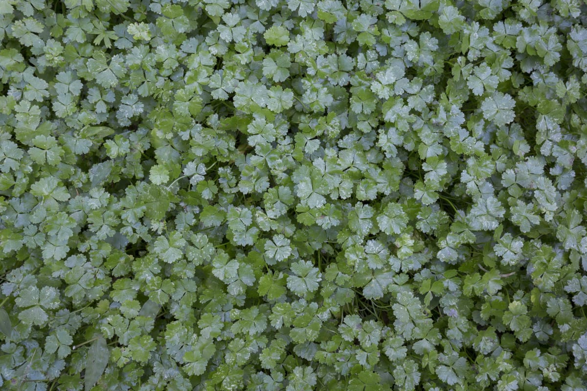 It's known as Pennywort (scientific name Hydrocotyle tripartita) and it's a low-growing ground cover that loves damp part-sun spots. The leaves usually have three separate segments (like Clovers), though sometimes it's up to five segments, and the leaf margins can be a bit toothy, giving them a delicate and quite ornamental appearance.