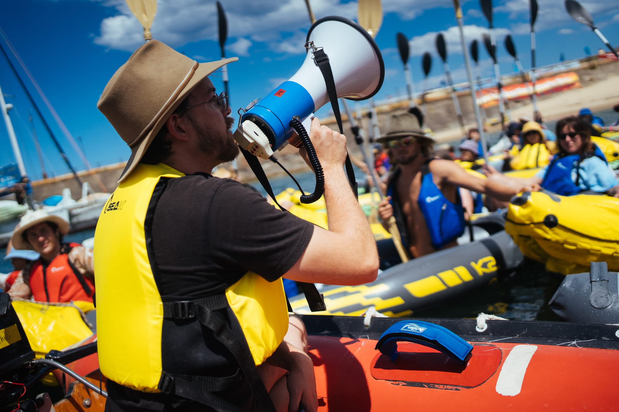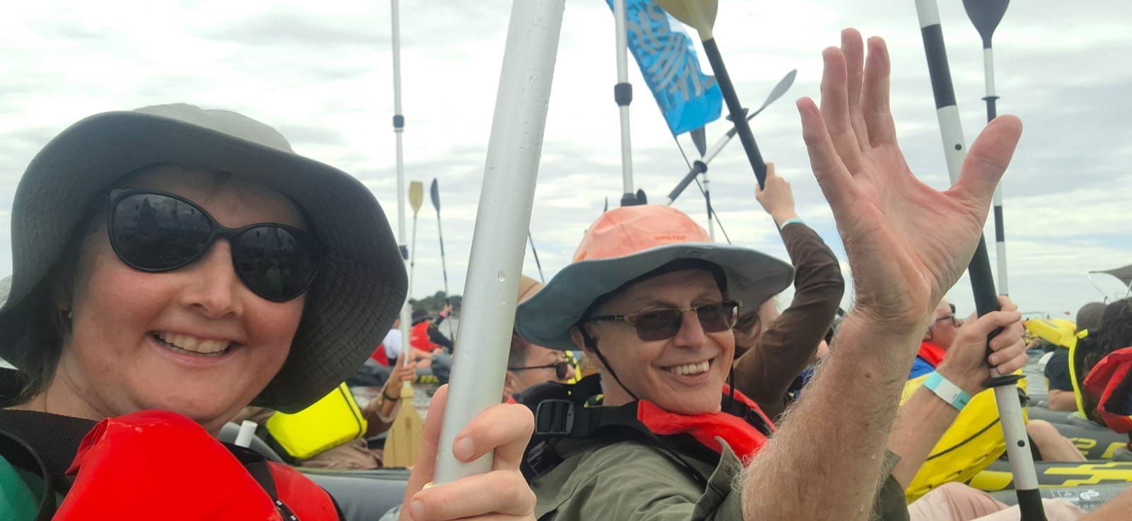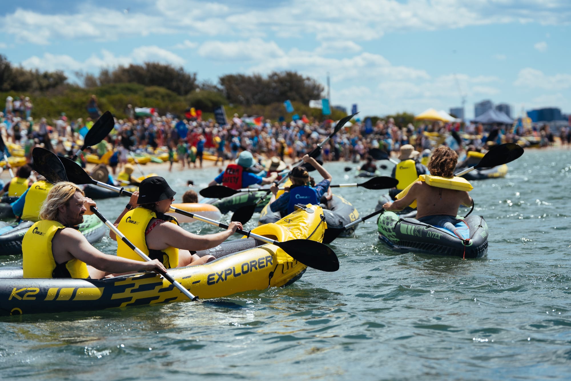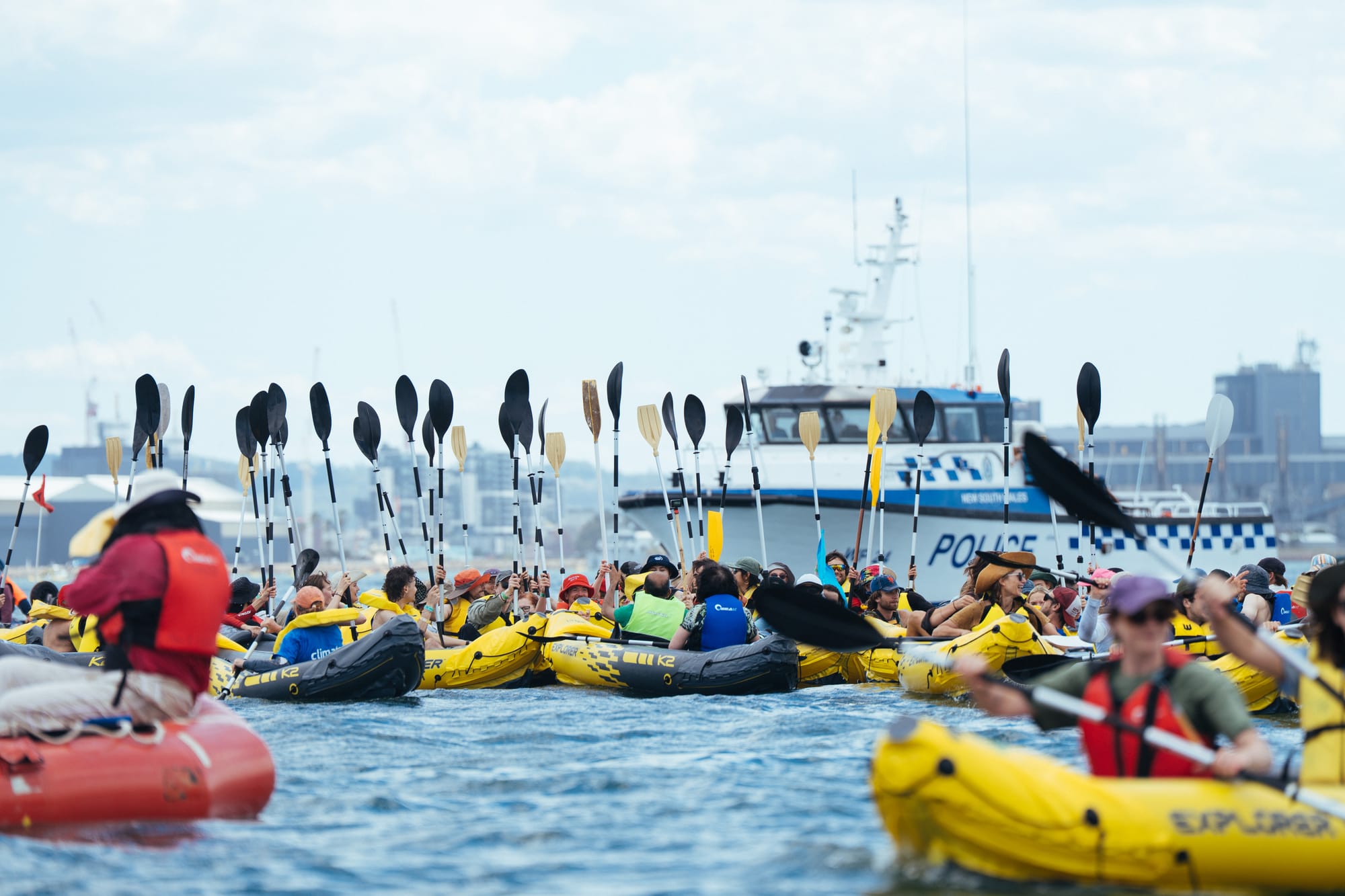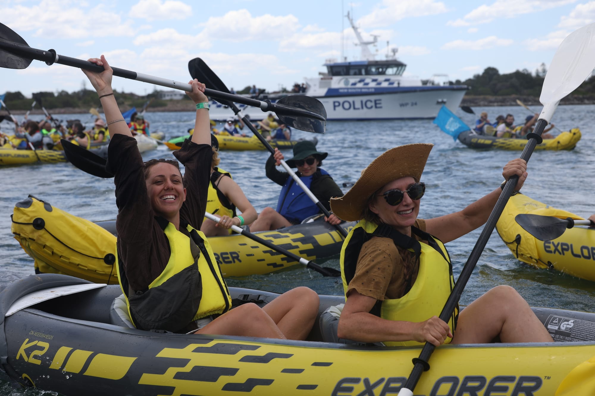 Kayakers protesting at 2025's Rising Tide. Photos: Lee Illfield