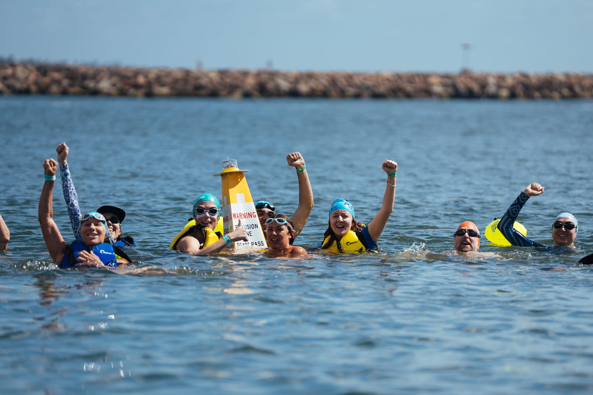 Nonetheless, entering the water was stressful, not knowing if the drones above belonged to police or media, and Cath remembers paddling on an adrenaline rush into the shipping channel, where police were prioritising the retrieval of swimmers.