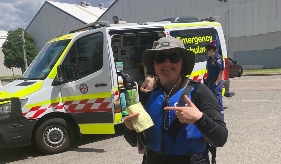 After being taken to shore, processed and discharged, Cath was met by volunteers, who brought water, lollies and fruit, and drove her back to camp, where she was reunited with family.