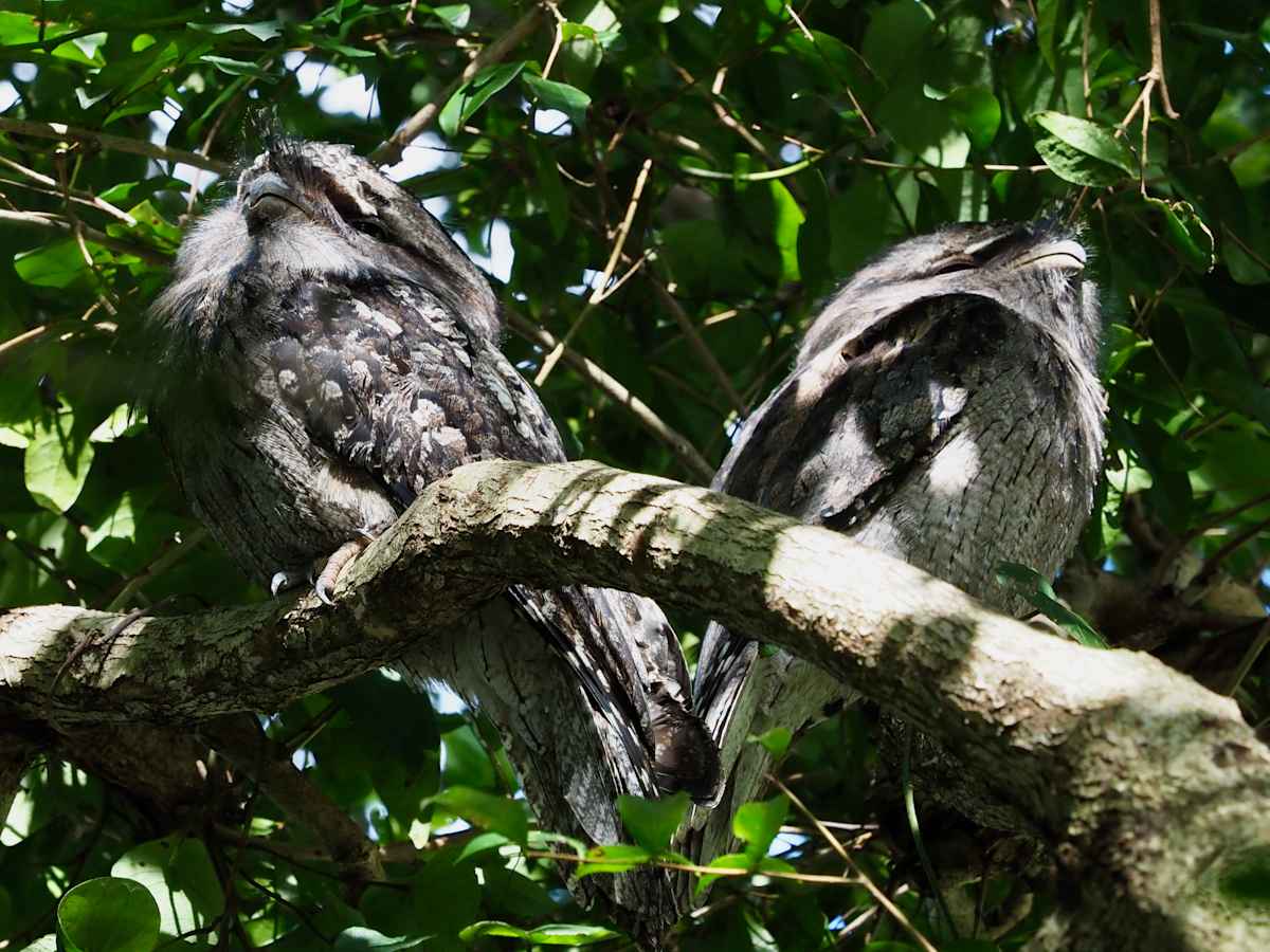 After a few months' absence, I discovered this pair huddled up in the back corner of our yard. Well, I didn’t discover them, not at first. I started to hear a bit of a ruckus in a tree, with lots of very angry Lewin’s Honeyeaters repeatedly calling and flying in and out of the foliage. This isn’t unusual. There’s normally some level of argy bargy going on when it comes to wildlife, whether it be fuelled by love or war. But it was a distinct sound in response that got my attention. A sharp, short ‘click’ or ‘whack’ or ‘clack’; the sound of something shutting quickly, something like a big ol’ wide beak. I pretty much ran out the door, knowing exactly what I’d find, if I could find it.