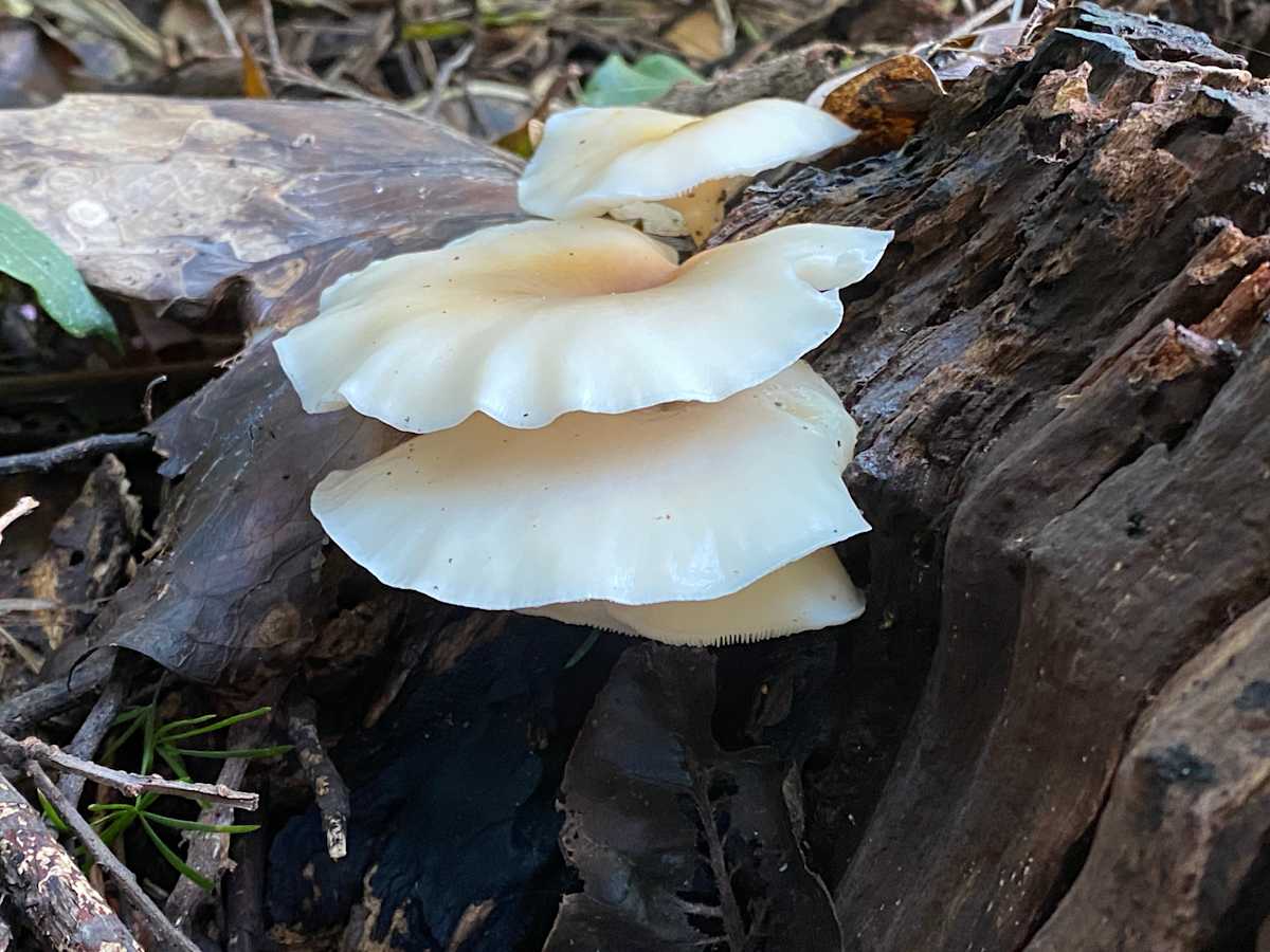 During the day, they look sort of like oyster mushrooms, growing in clumps but with a brownish looking bruise in the centre. But beware, unlike oyster mushrooms, these fungi are extremely toxic so look but don’t touch. Join the Bioluminescence Australia Facebook page for sightings, photos and tips.