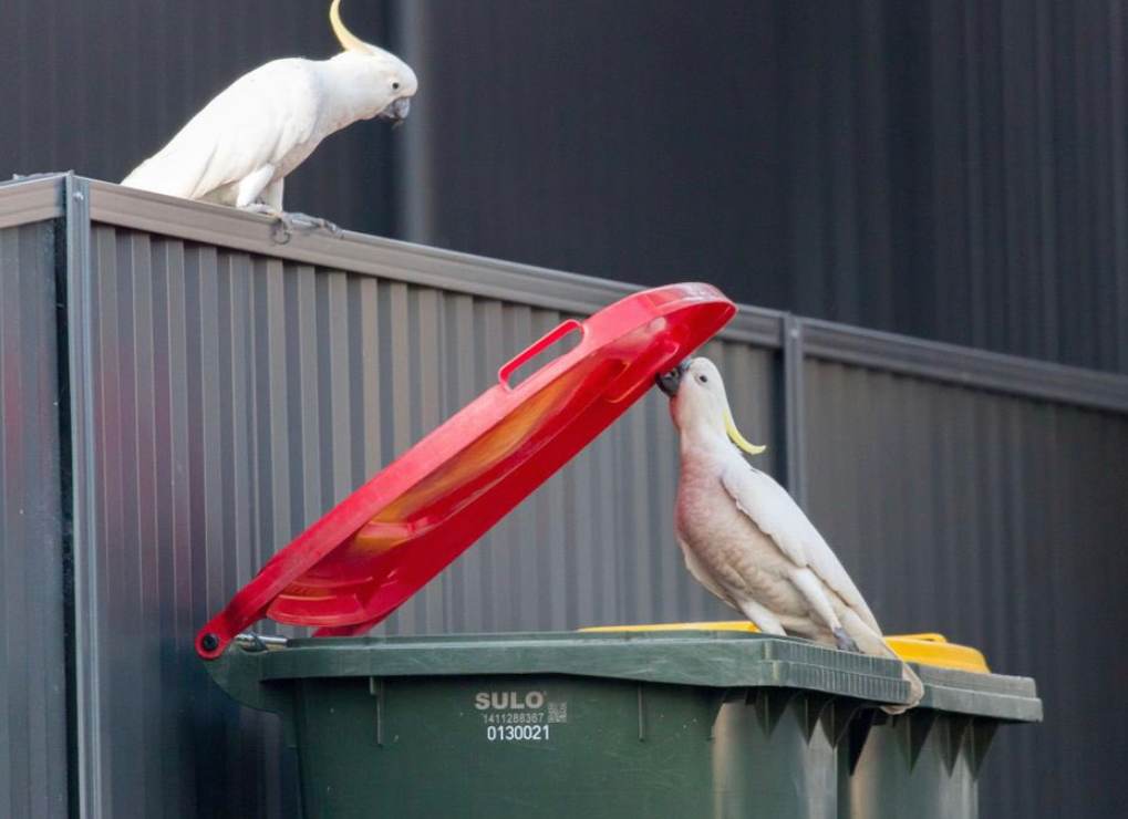 Cockatoos started by targeting general waste bins with red lids but have acquired a taste for Food Organics and Garden Organics (FOGO).