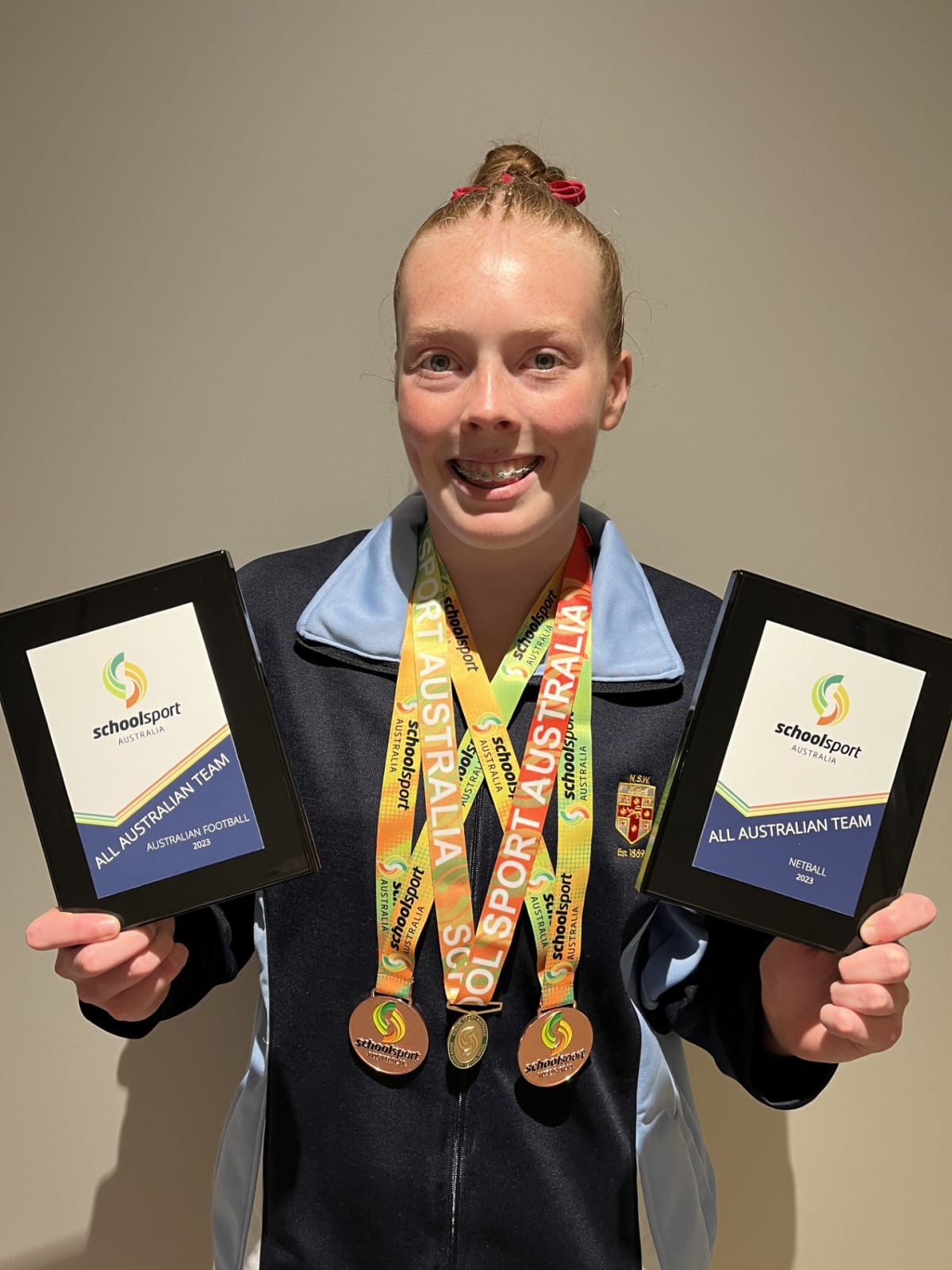 In her flourishing career, Grace has already recorded a long list of achievements. In addition to winning the 2024 City of Wollongong Sports Achievement Award, Grace has secured places in the 2023 Illawarra Academy of Sports, Australian All Schools Netball, and Australian All Schools AFL teams — all a testament to her hard work.