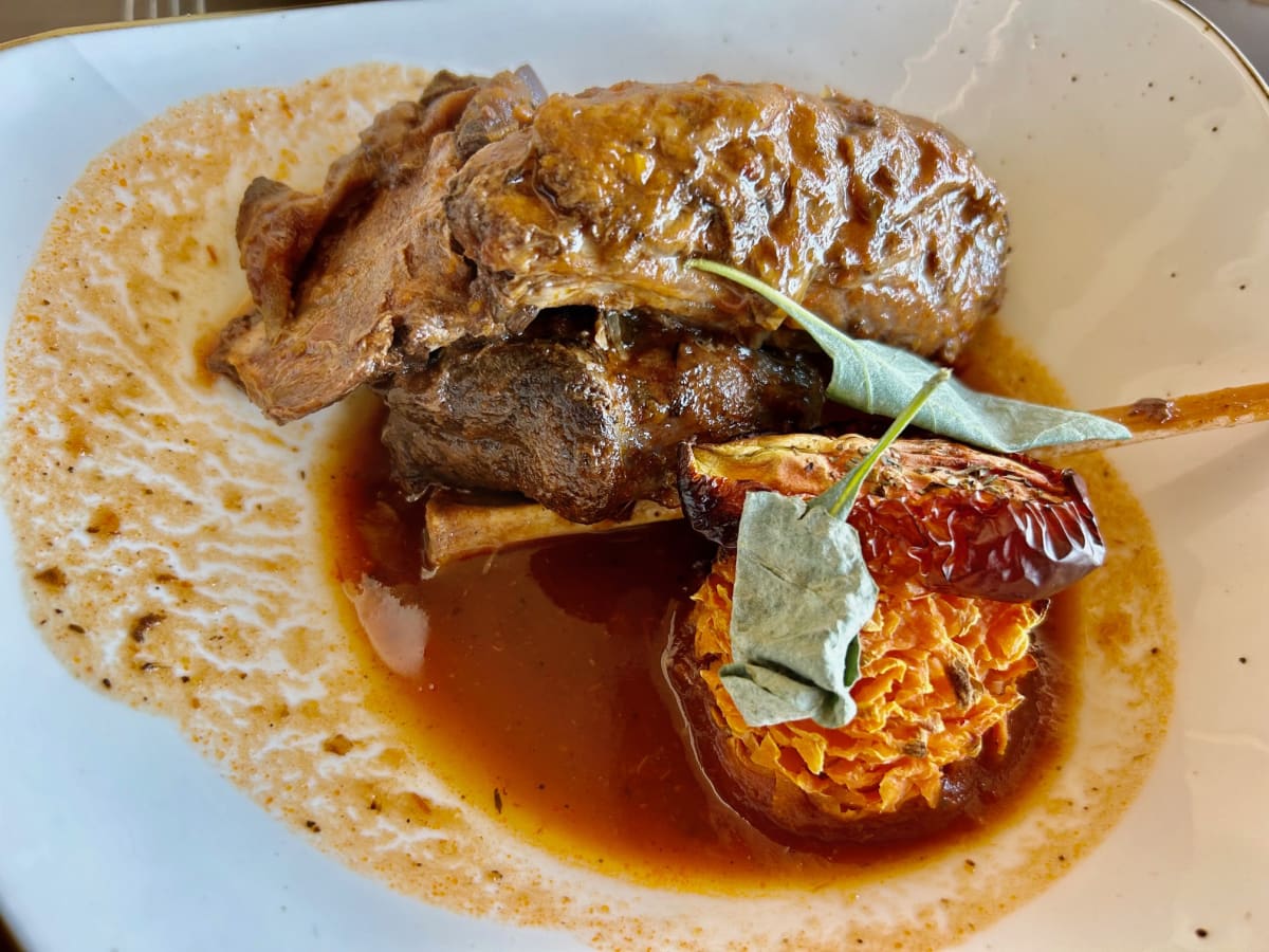 Among the many menu highlights, there’s damper with native herbs and whipped eucalyptus butter, blue gum-smoked barramundi, and quandong-glazed chicken with warrigal seeds. I couldn’t go past the melt-in-your-mouth wallaby shanks braised in bush tomato and washed down with a refreshing eucalypt gin spritz.