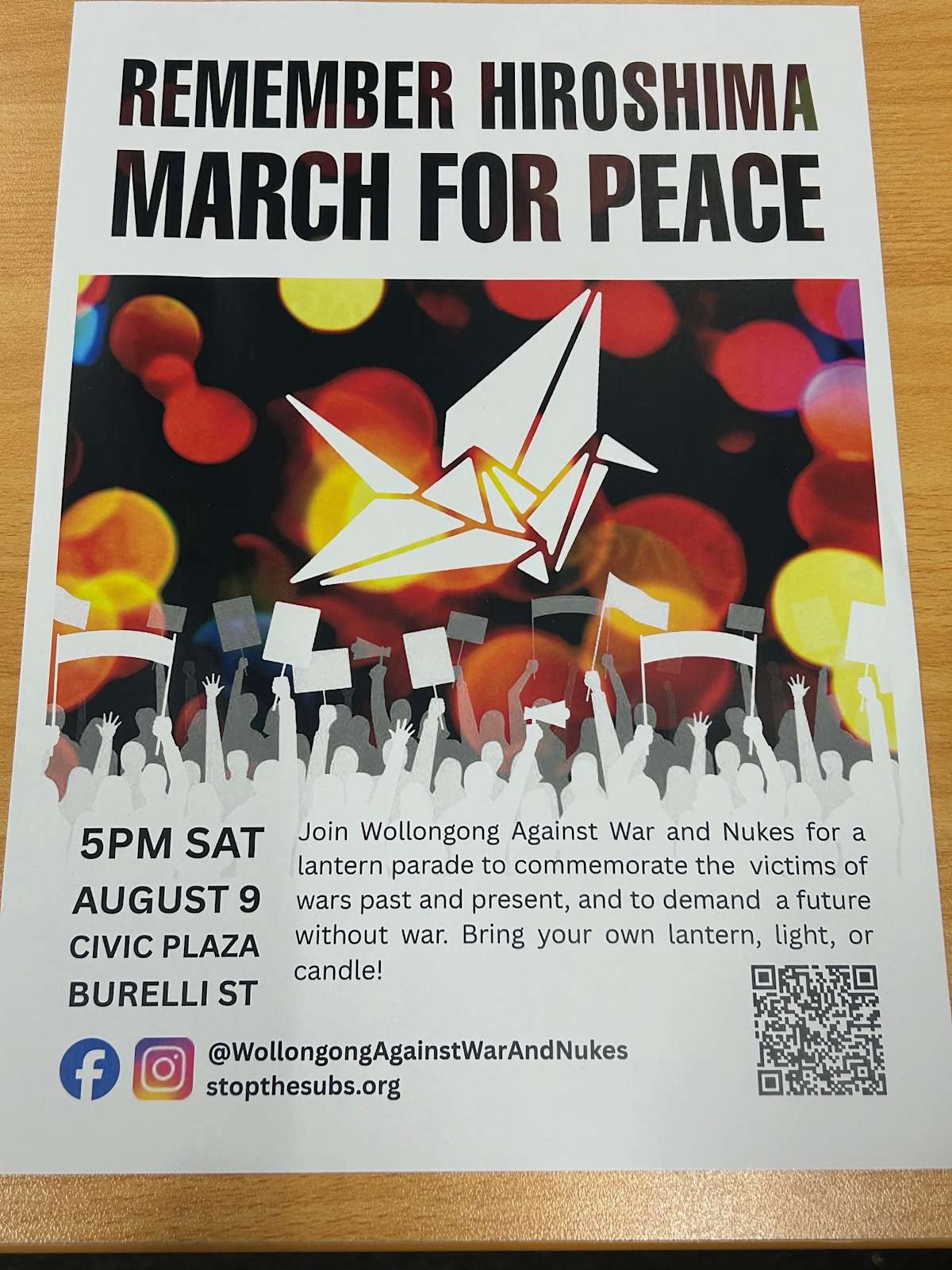 Today, he said, the role of the peace movement in Wollongong is more important than ever. The announcement of the AUKUS nuclear submarine deal in 2021 "was the rebirth of the peace movement here" and gave rise to the formation of Wollongong Against War And Nukes (WAWAN).
