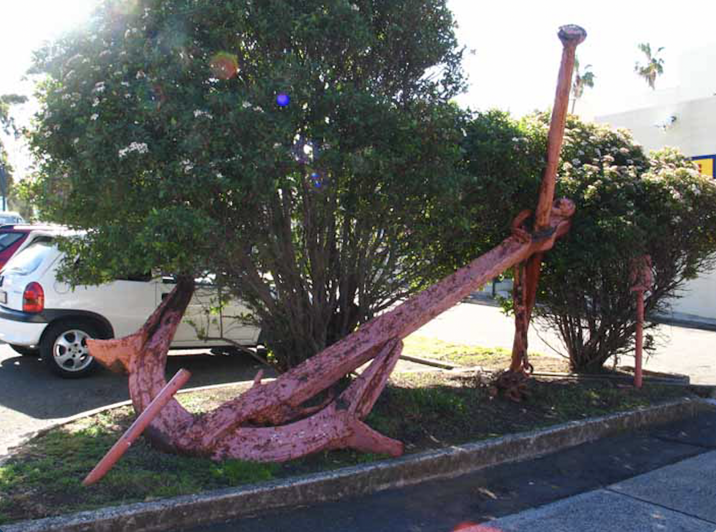 There’s a huge red anchor outside the Ocean Beach Hotel at Shellharbour. Most people probably don’t know it’s history, or why it’s there.