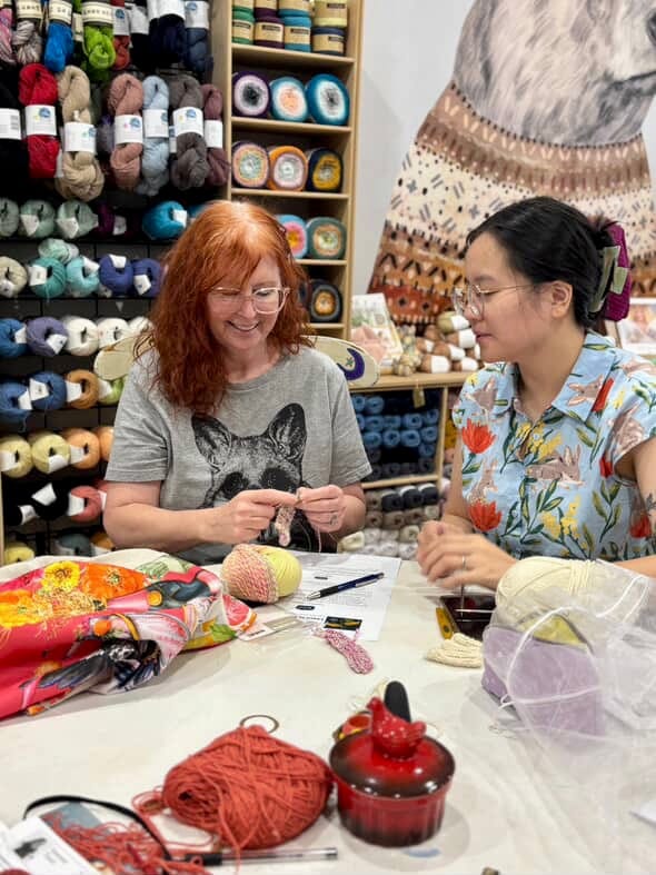 Amanda de George recently started to learn to knit with teacher Mia Do, while the studio hosted sold-out workshops with Dear Pru. Photos: Sasha Torilo