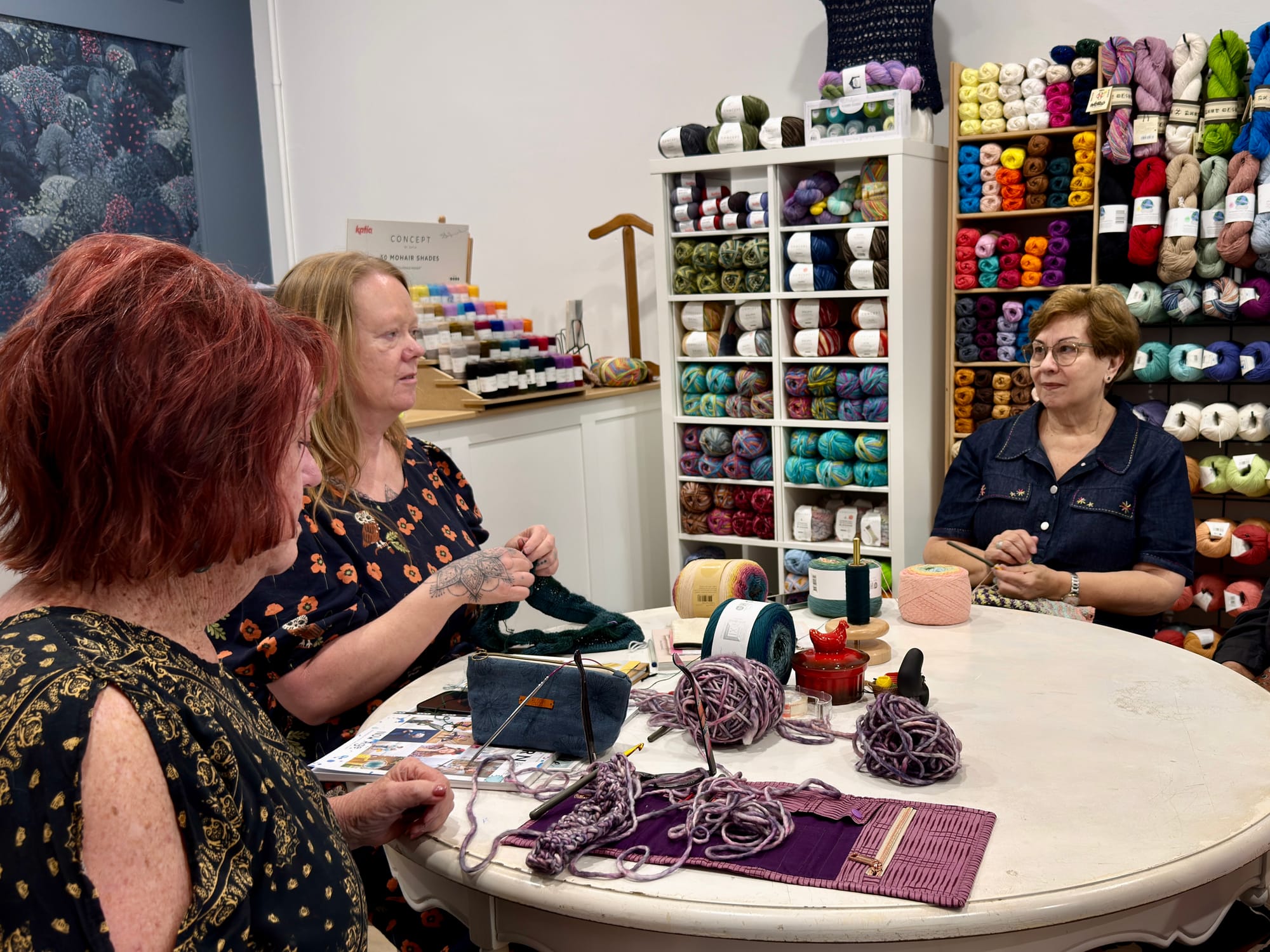 And she’s right. While I sit with Sasha and her mum around the table, both crocheting as they talk, a customer comes in, project in hand, to show off her work. By the time I leave, there are five women seated at the table, chatting, creating and discussing what they’ll do if Sasha takes home the store of the year prize.