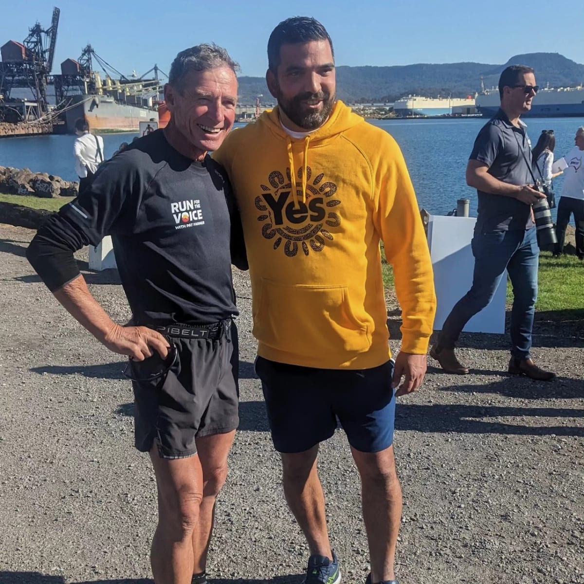 "We’ve got one chance in a lifetime, in my lifetime, to be able to vote yes," Pat said, as he arrived in Wollongong and then Port Kembla, joined on the journey by other keen runners and supporters of the Yes campaign.