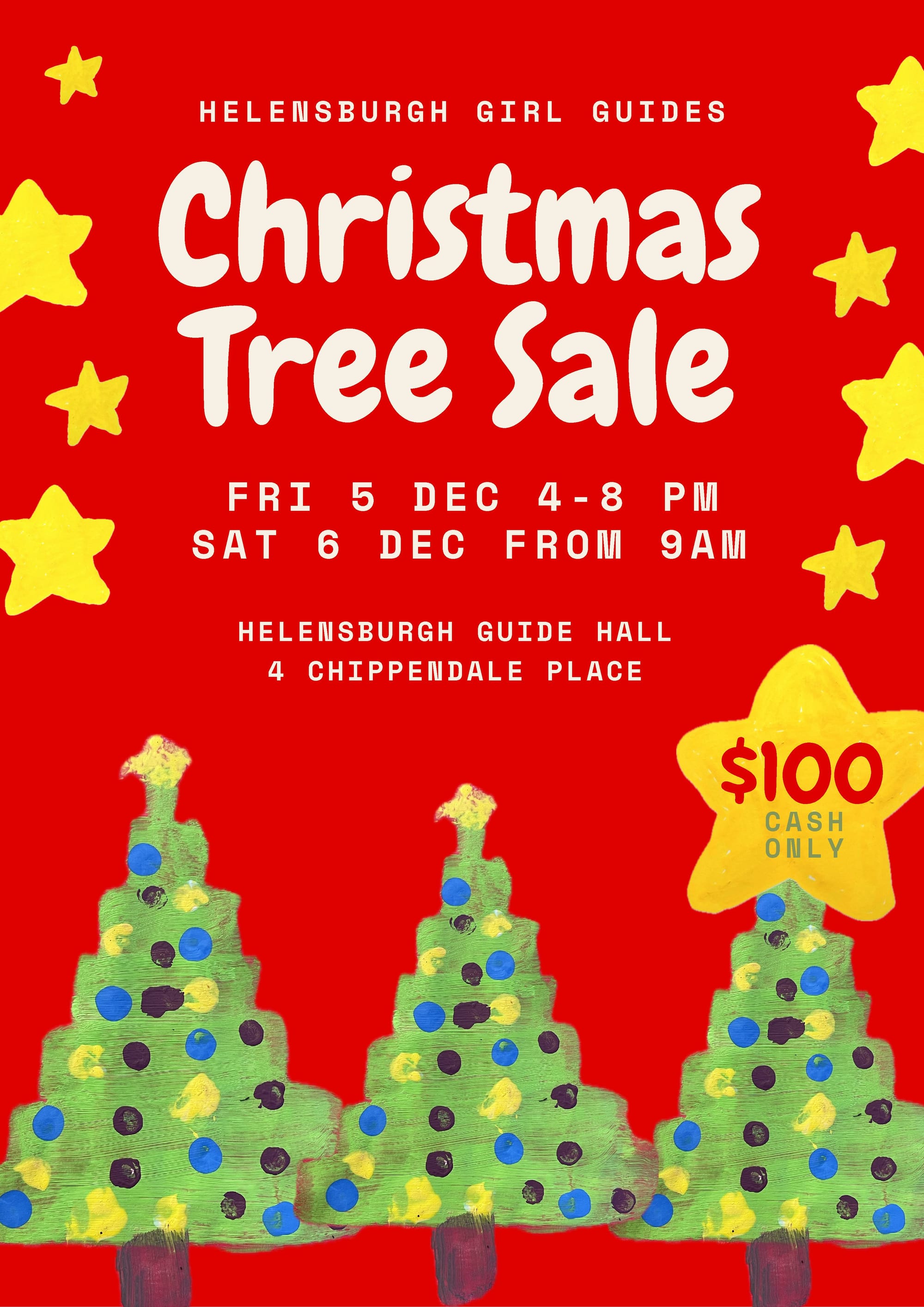 The Helensburgh Girl Guides Christmas Tree Sale, starts from 4pm Friday and opens again at 9am on Saturday (unless sold out) at the Guide Hall, 4 Chippendale Place, Helensburgh. $100 for 6ft trees, cash only.
