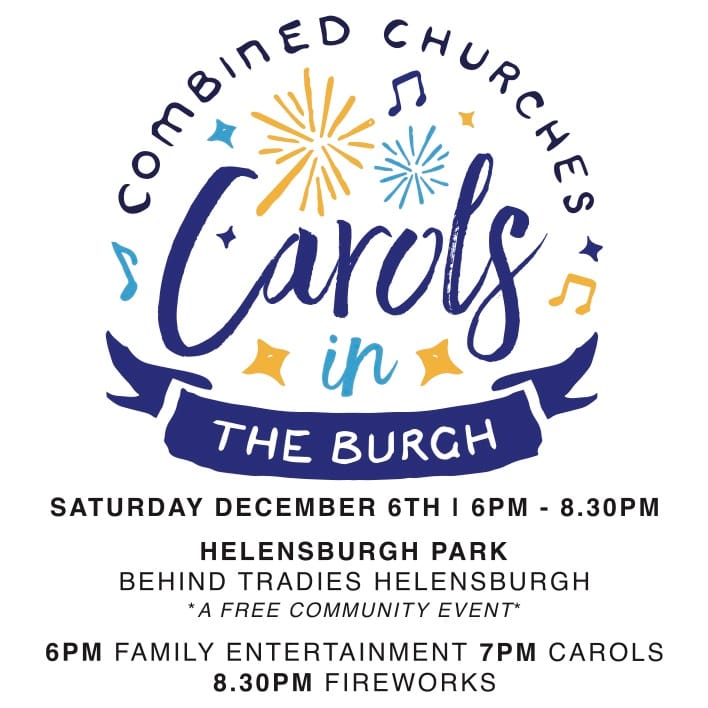 Saturday, 6 December, 6pm-8.30pm, Helensburgh Park (behind Tradies Helensburgh). A free community events, with family entertainment from 6pm, carols at 7pm and 8.30pm fireworks.